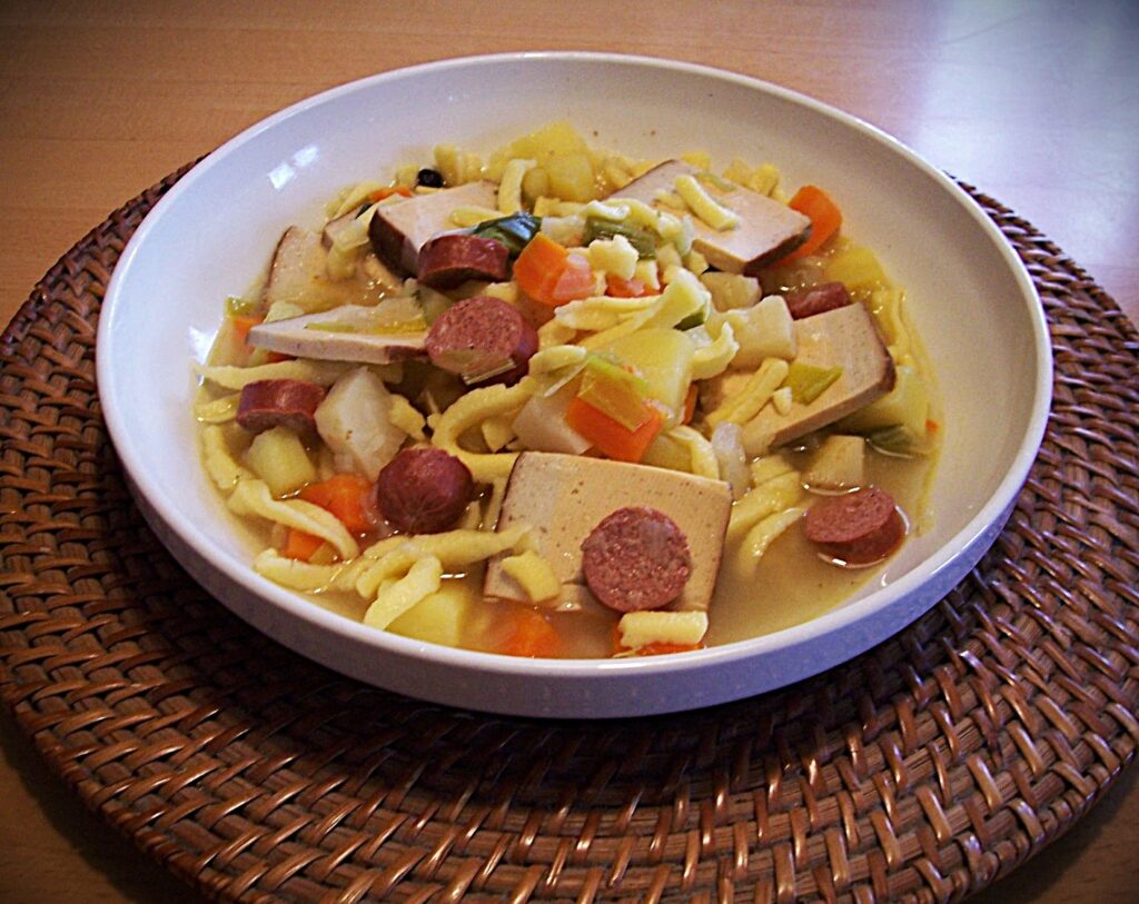 Andere wissen zu berichten, dass nach dem Krieg alles in die Suppe kam was vorhanden war, wozu auch die geliebten Spätzle gehörten.