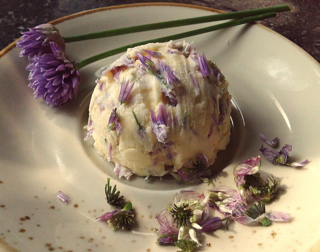 20 g Schnittlauchblüten (15-20 Blütenköpfe; die kleinen Blütenblättchen abgerupft) und