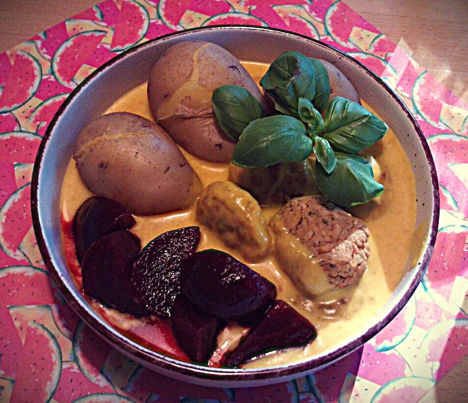ggf. schon am Vortag zubereiten und braten. Andere Veggie-Bällchen gehen auch, dann wird’s halt eine Bällchen-Bowl.