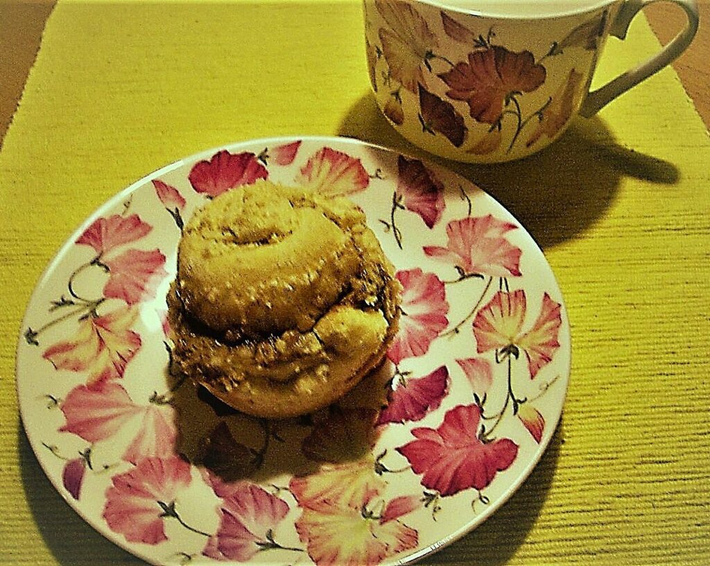 Die Teigrolle in 12 Scheiben schneiden und diese dann jeweils flach in eine Muffinform mit 12 Verfiefungen legen. Die Vertiefungen ohne Papierförmchen benutzen, nur leicht einfetten. Ca. 20 Minuten backen.