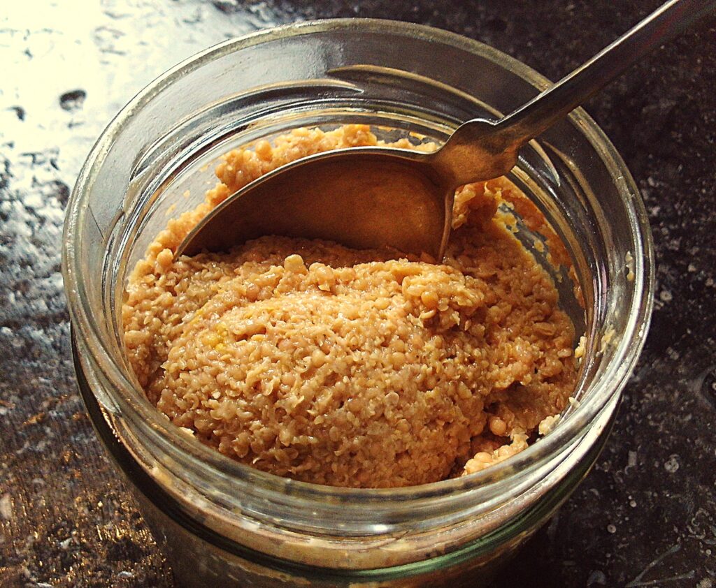 Die gequollenen Senfkörner mittels Pürierstab mixen, in ein 400 ml-Schraubglas geben und bis zum Anbruch noch 4 Wochen im Kühlschrank ruhen lassen.