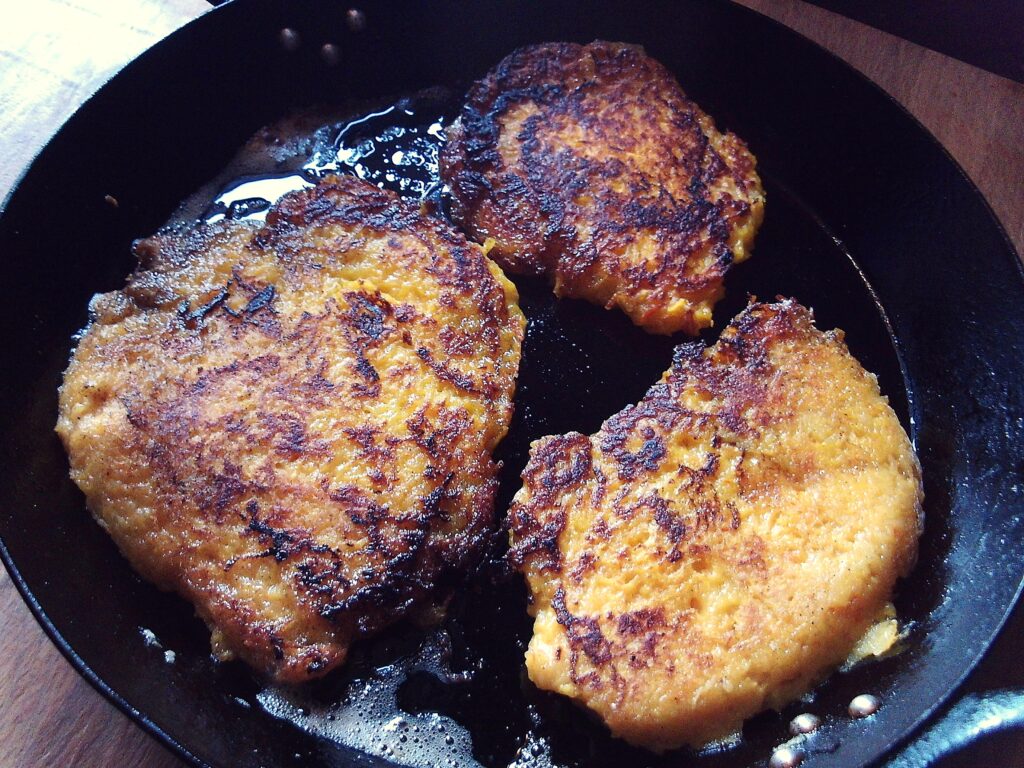 1 EL Butter / Margarine in einer großen Pfanne zerlassen und 10 Puffer braten, die nicht zu dick sein sollen.