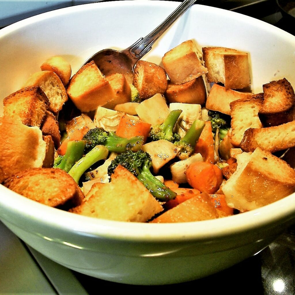 Varia: auch jedes anderes Gemüse ist geeignet – nur schön bunt sollte es werden! Kartoffeln würde ich für dieses Rezept nicht verwenden, da das Brot ja schon genügend Kohlenhydrate mit sich bringt.