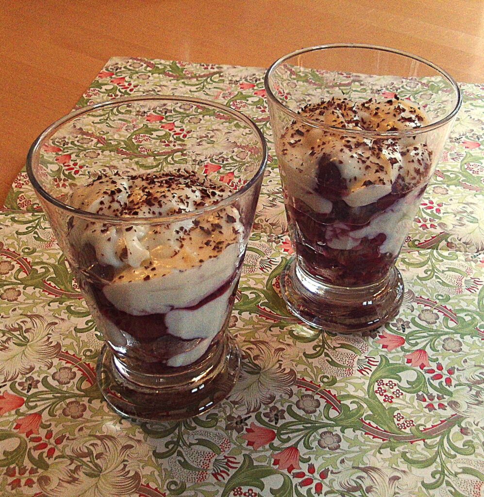 – Buiskuit-Tiramisu: aus einem Schoko-Buiskuitboden (Fertigprodukt) mit einem der Gläser 12 Scheiben ausstechen und anstatt der Cookies verwenden.