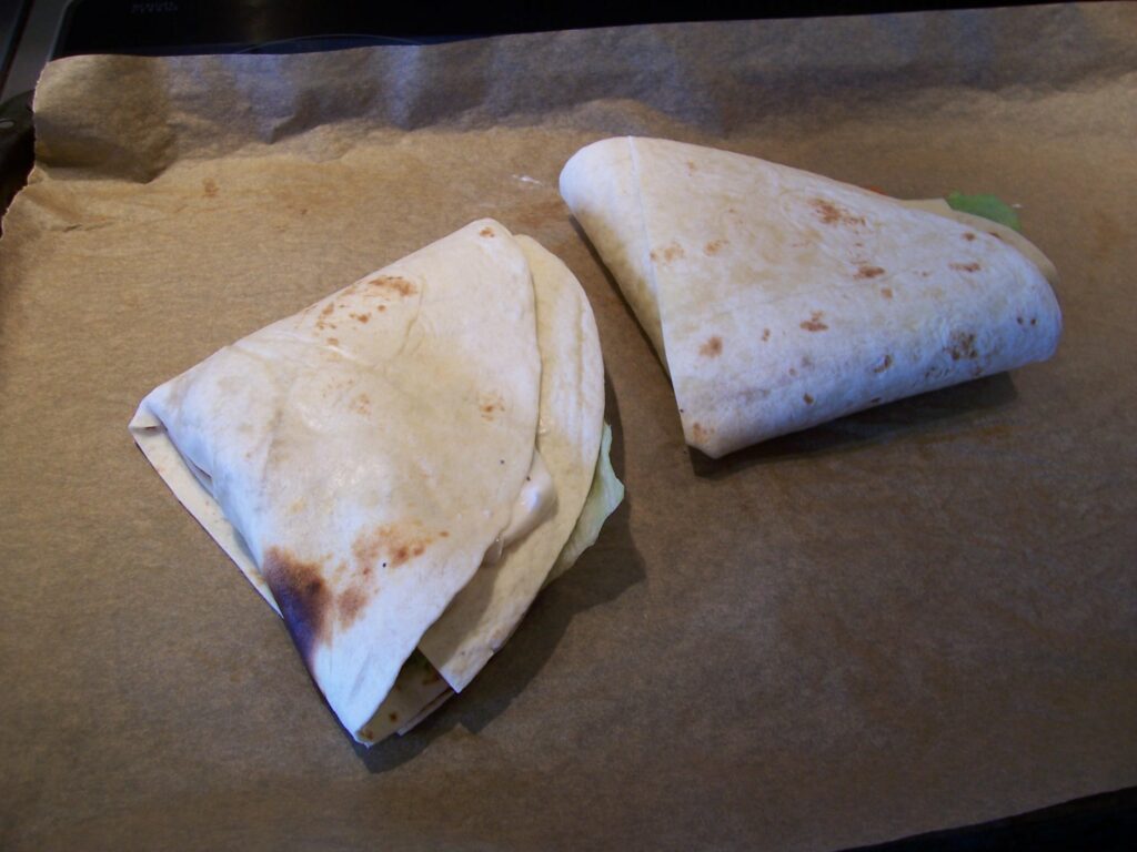 Durch die Klapptechnik lässt sich eine solche Tasche sauberer essen als ein Hamburger. Ganz ohne Tuch für die Finger wird es jedoch auch hier nicht gehen!
