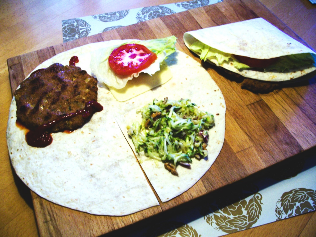 Yufkatasche mit Veggie-Frikadelle + Zucchinisalat: